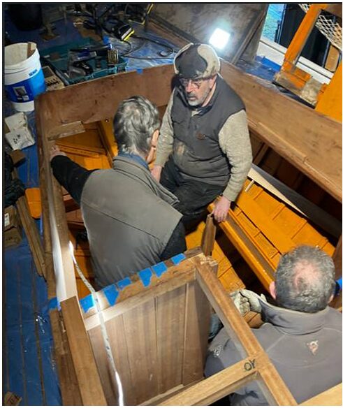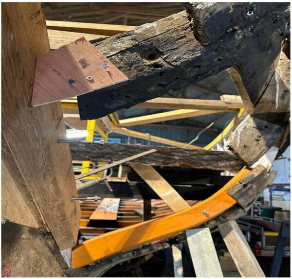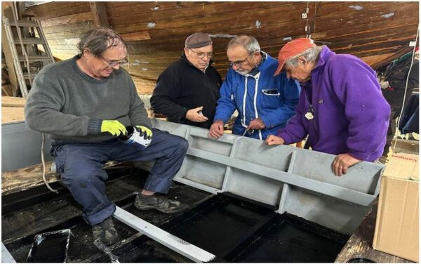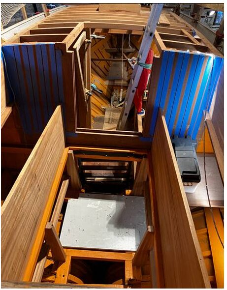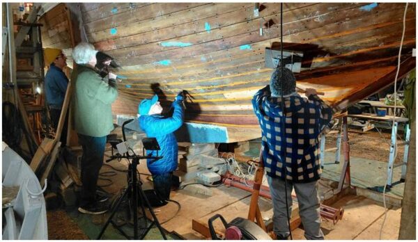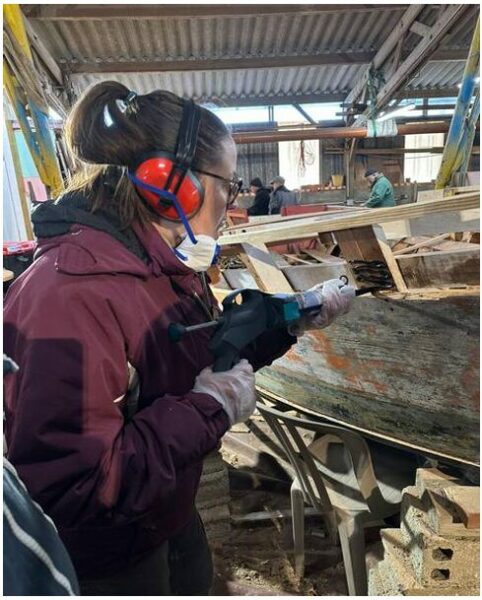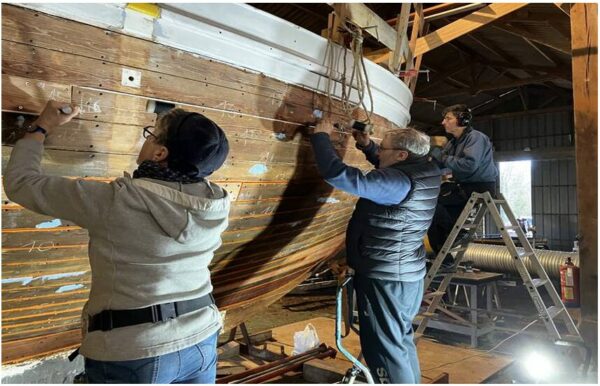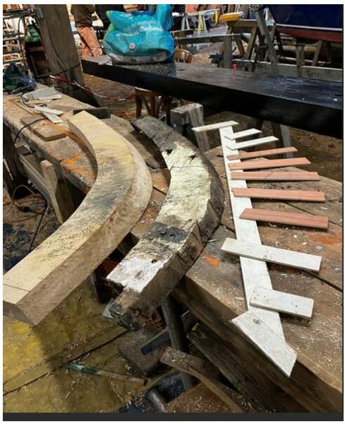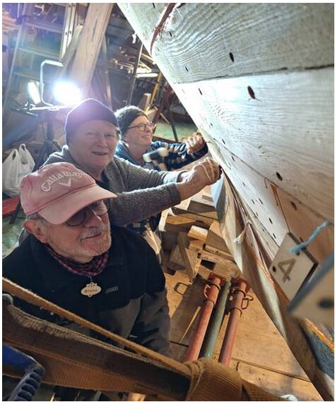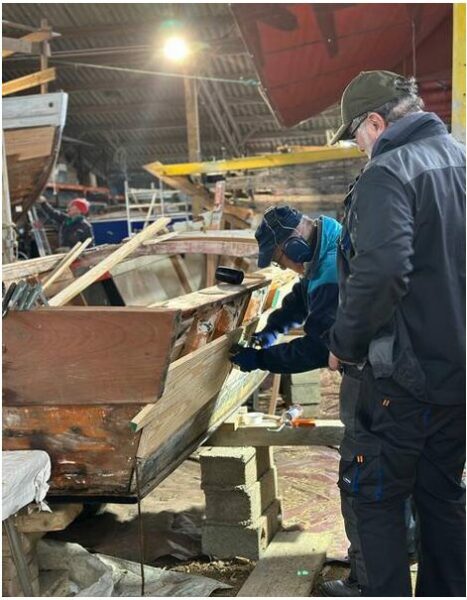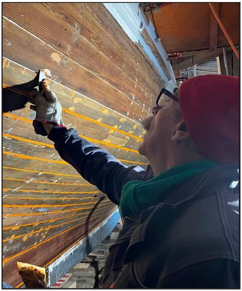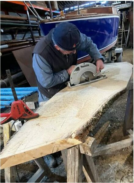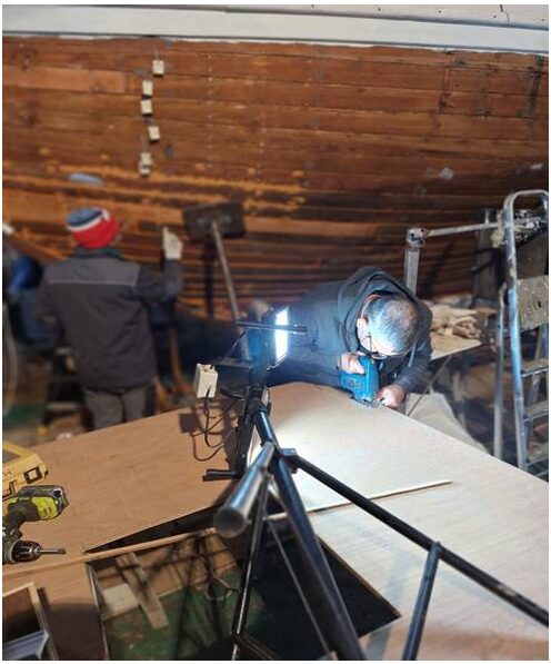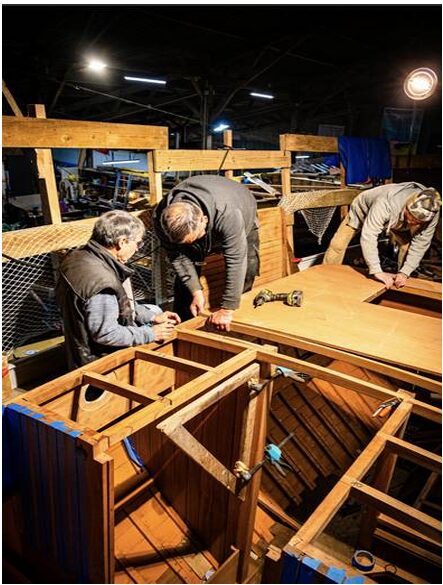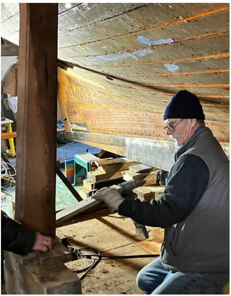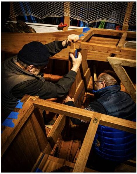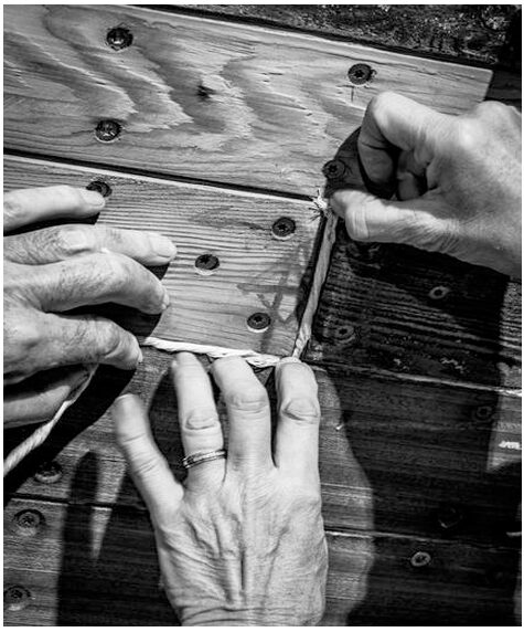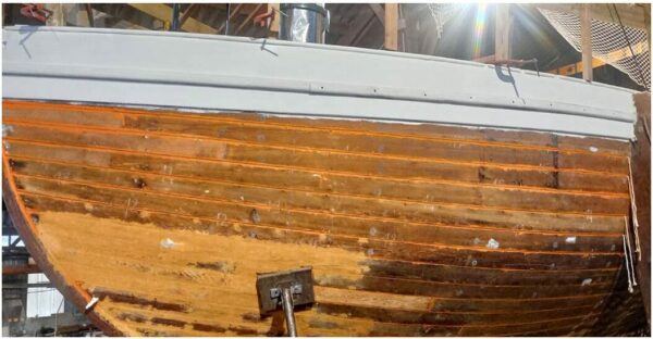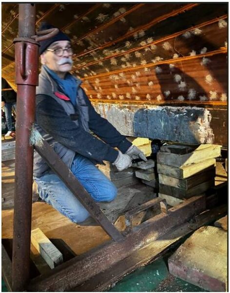 On peut enfin retirer les béquilles et finir le calfatage babord