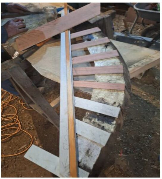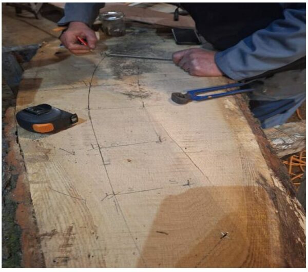 Les pièces constituants les membrures de ma préférée sont en chêne de 50 mm d’épaisseur. Les formes à réaliser sont complexes. Pour ce faire :